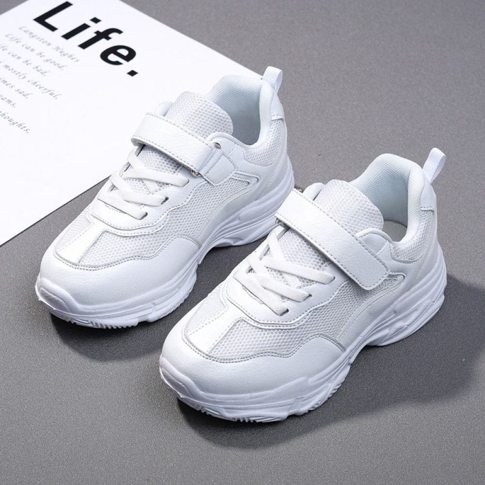 Children's White Shoes Parent-Child Shoes Spring New Breathable Mesh Mid-Large Casual Sports Shoes