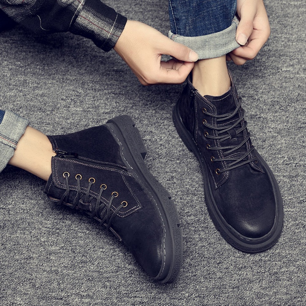 Martin Boots Men's Leather Short Boots Casual Trend Tooling Boots Autumn and Winter High-Top Mens Shoes