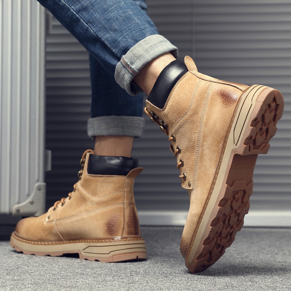 Men's Leather Martin Boots Winter Mens Boots Casual British Tooling Shoes Boots Men