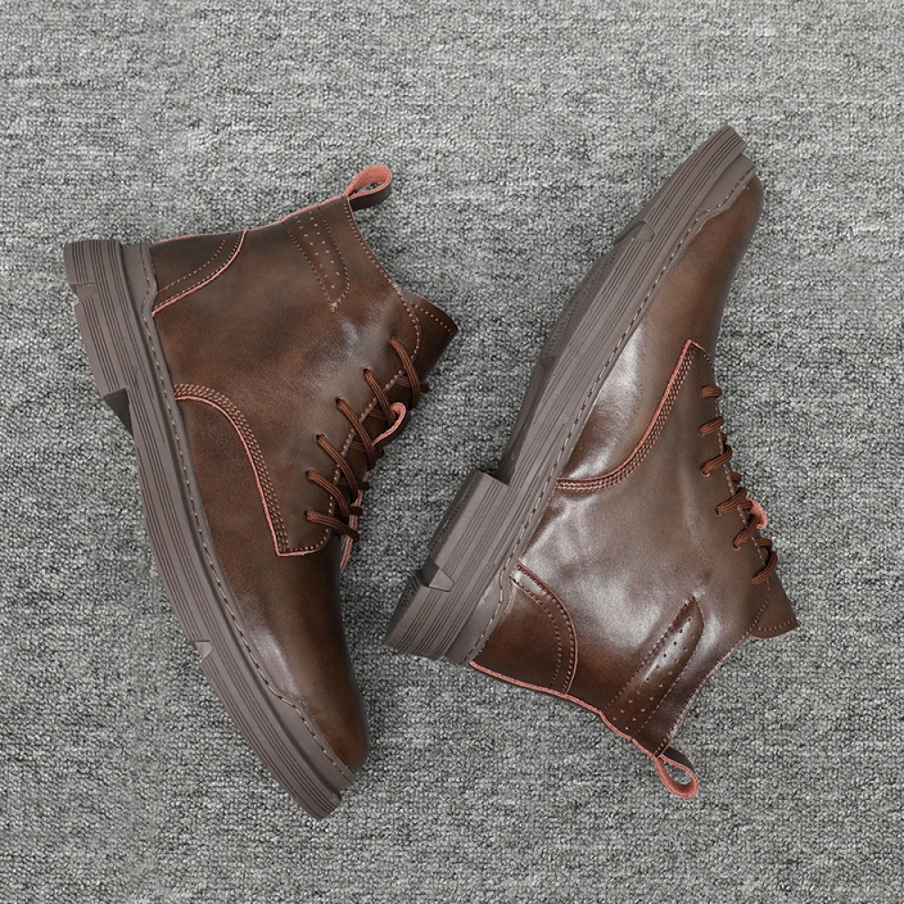 Martin Boots Men's Leather Short Boots Casual Trend Tooling Boots Autumn and Winter High-Top Mens Shoes