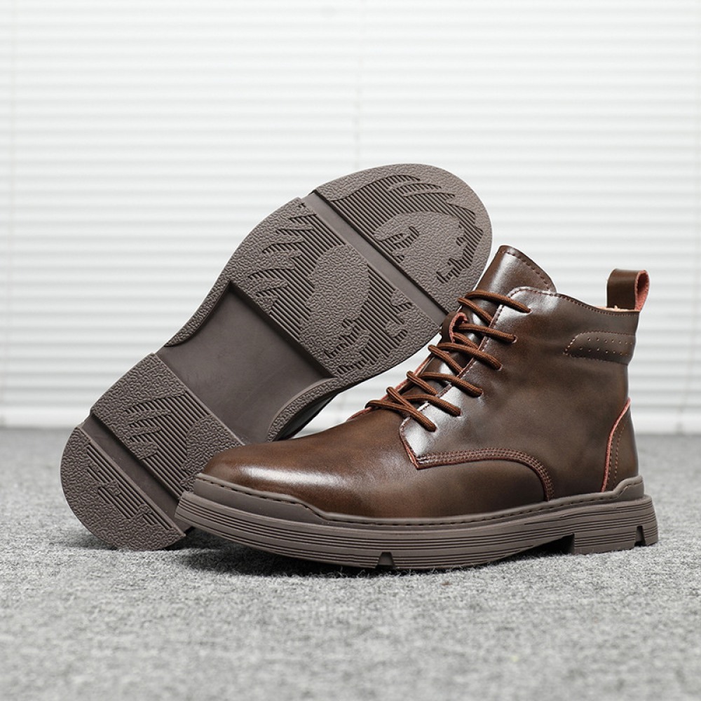Martin Boots Men's Autumn New Fashion Casual Leather Boots Add Velvet Warm Leather High-Top Boots for Men