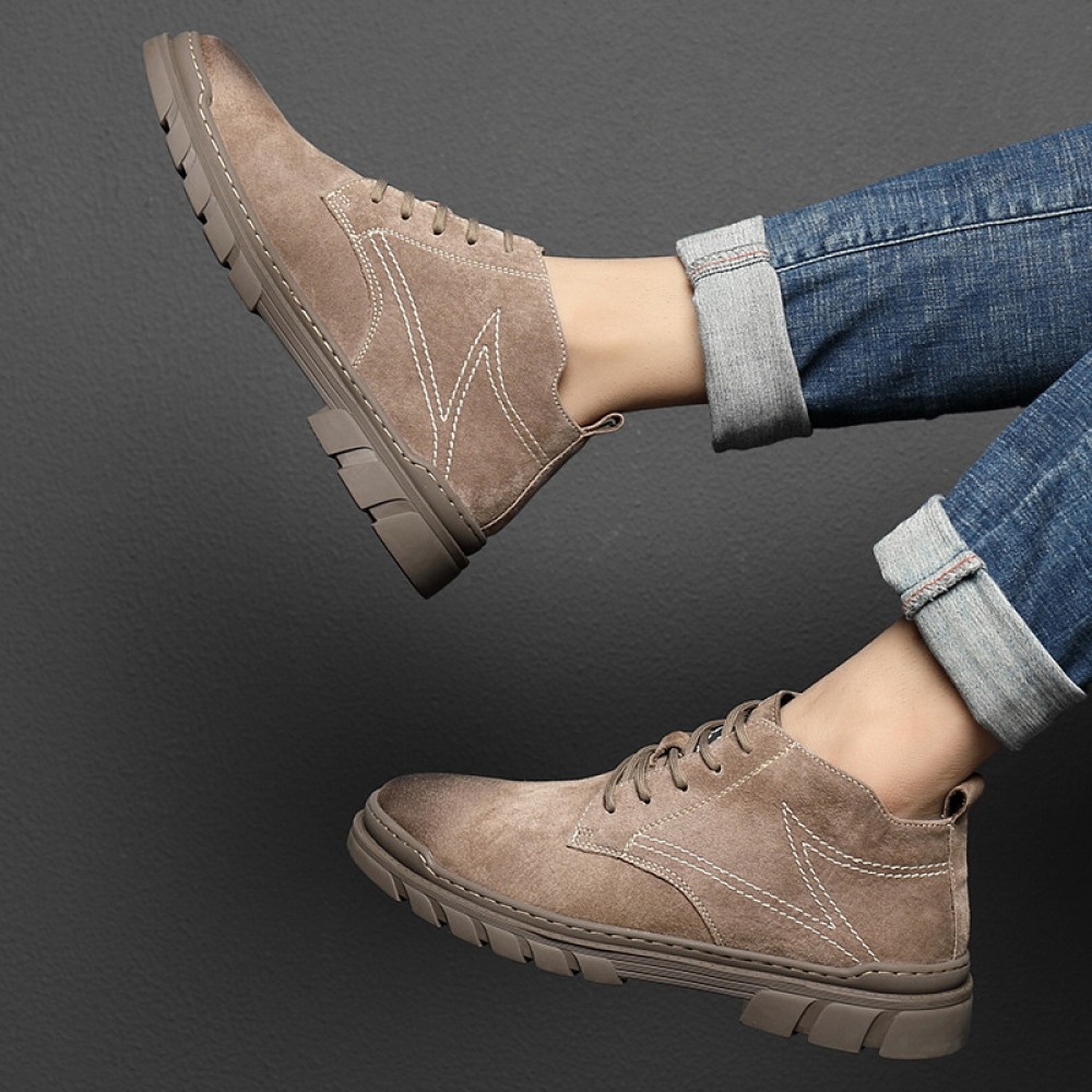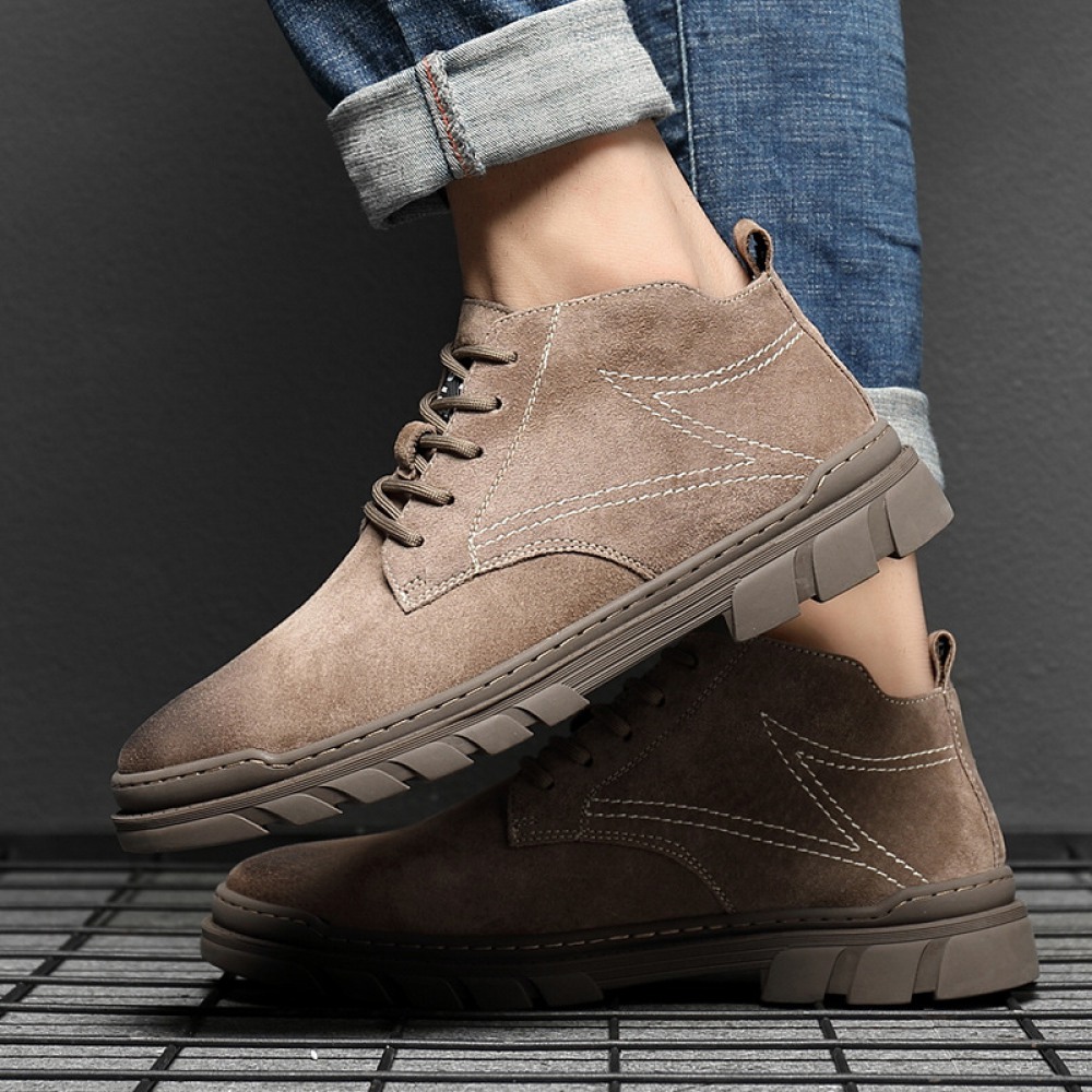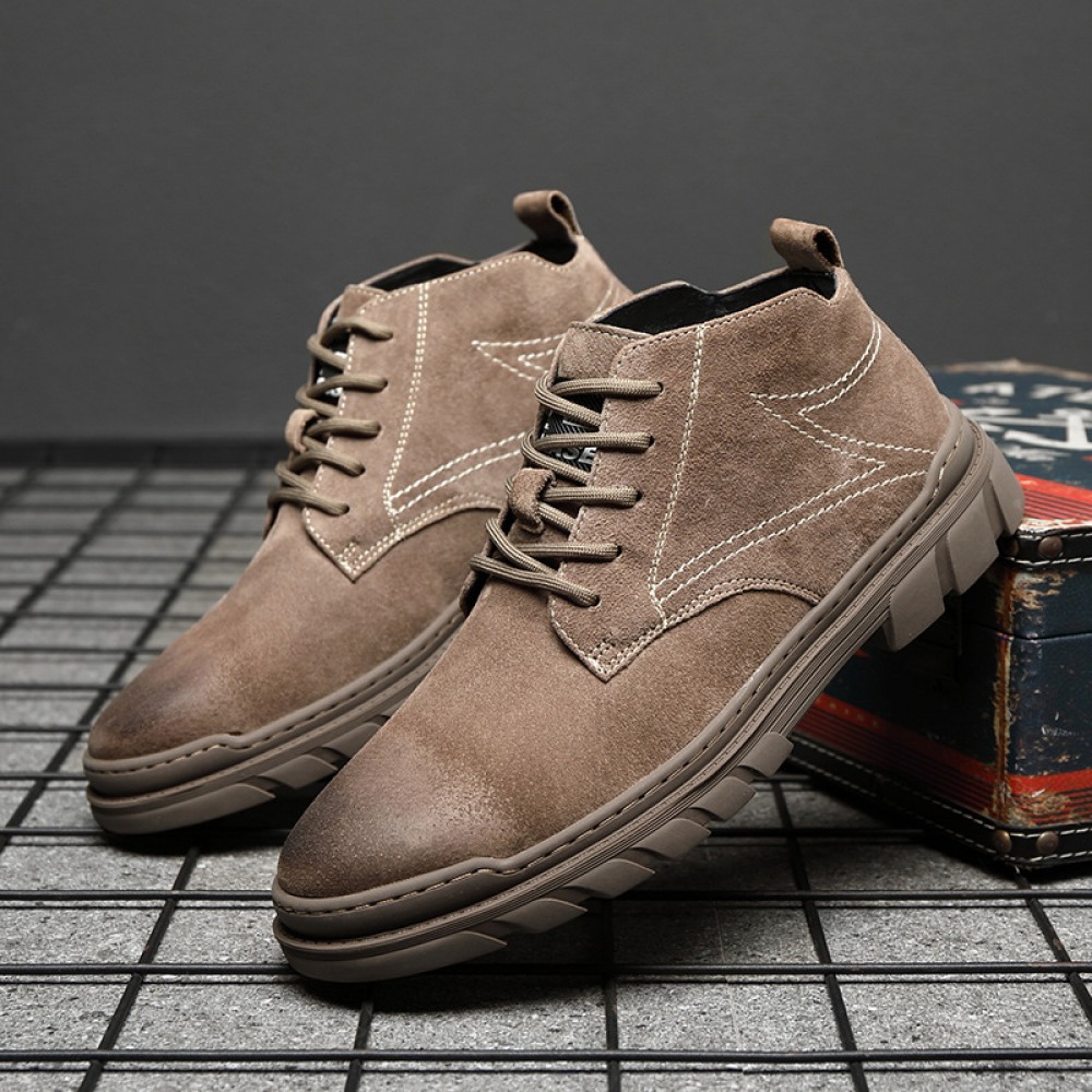 Autumn New Mid-Top High-Top Leather Shoes Men's Shoes Trendy Shoes Short Leather Boots