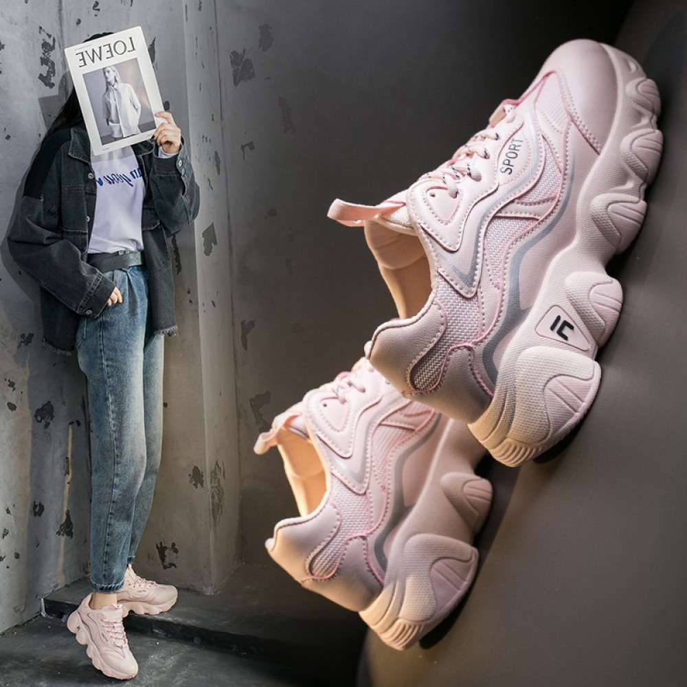 Spring New Student Sports Shoes Women's Running Thick-Soled Height Increase Shoes Women