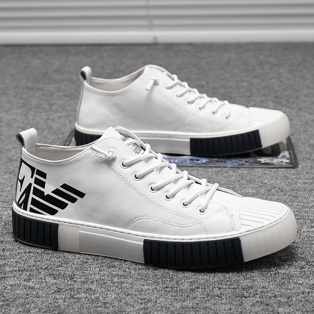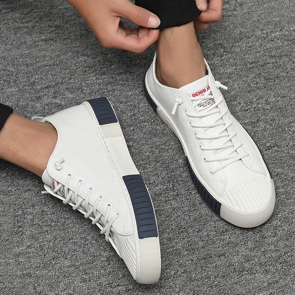 Sports Shoes Men's Spring New Trendy Shoes Leather Casual Style Men's Shoes White