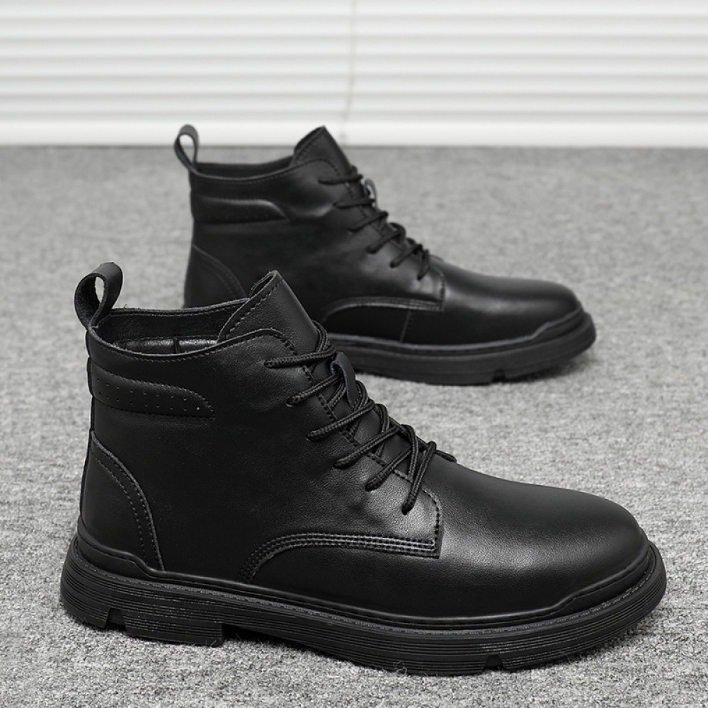 Martin Boots Men's Autumn New Fashion Casual Leather Boots Add Velvet Warm Leather High-Top Boots for Men