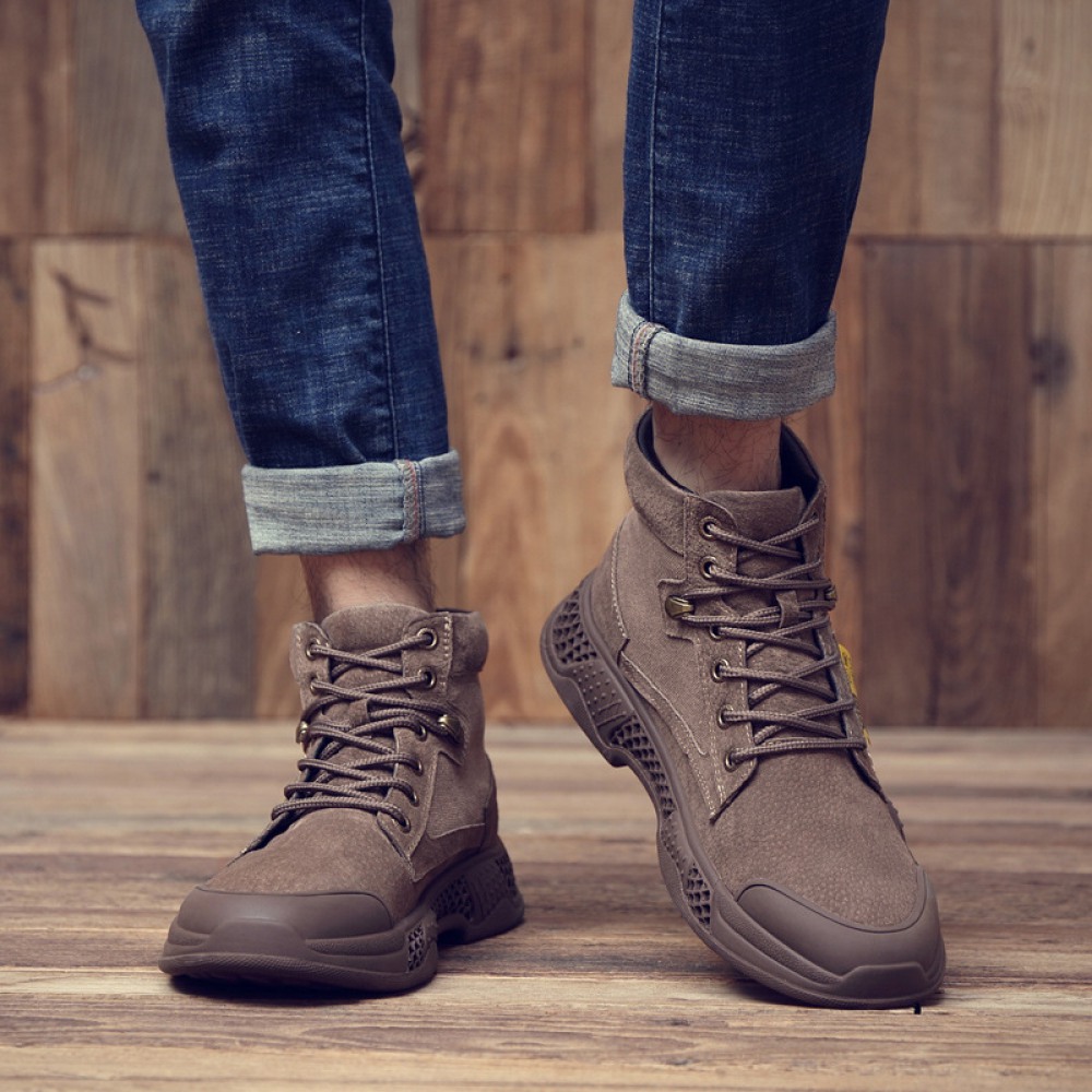Men's Shoes Autumn and Winter New High-Top Boots Trend Tooling Military Boots British Martin Boots Men's Trendy Mid-Top