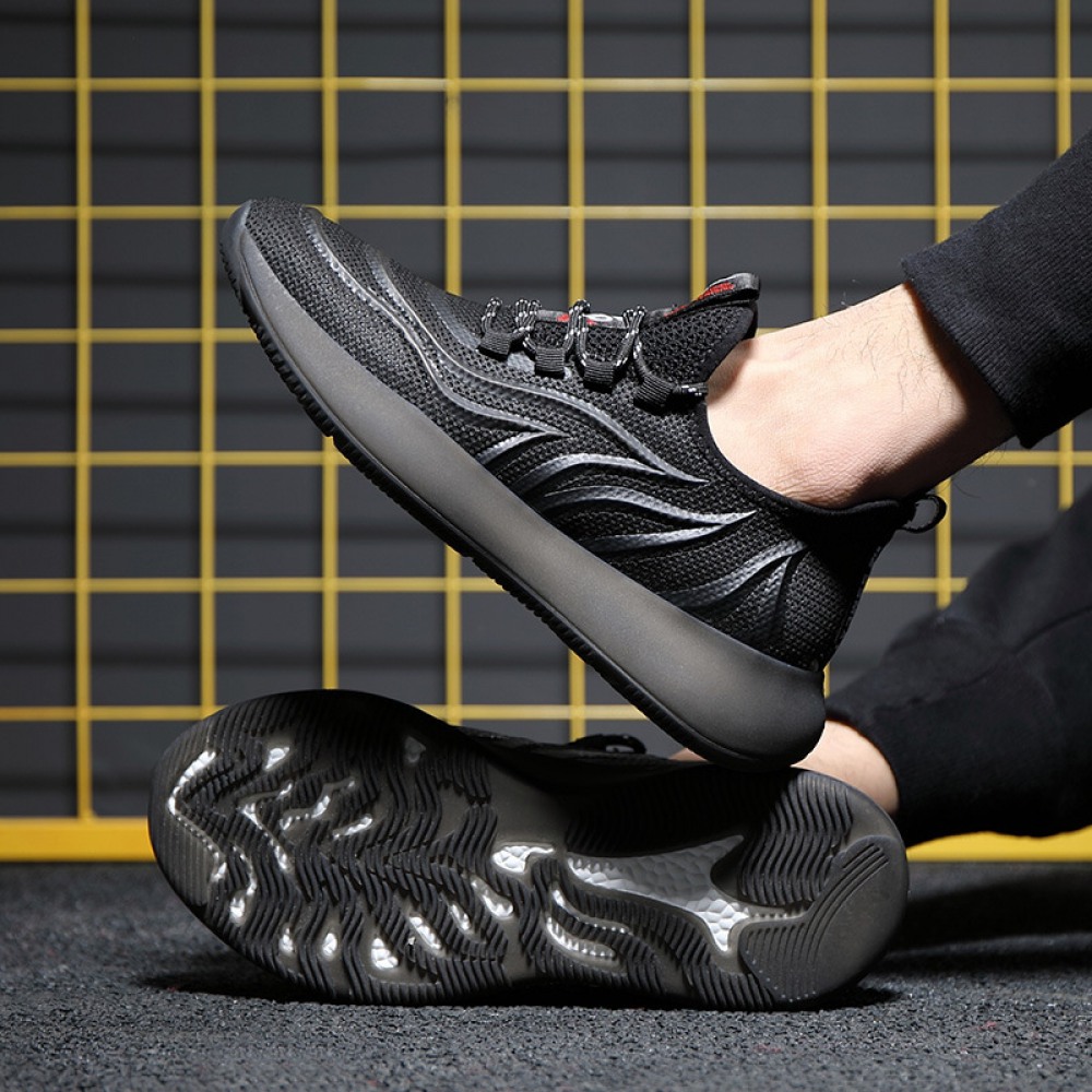 Men's Running Shoes Breathable Knit Slip On Sneakers Lightweight Athletic Shoes Casual Sports Shoes High Top All Black