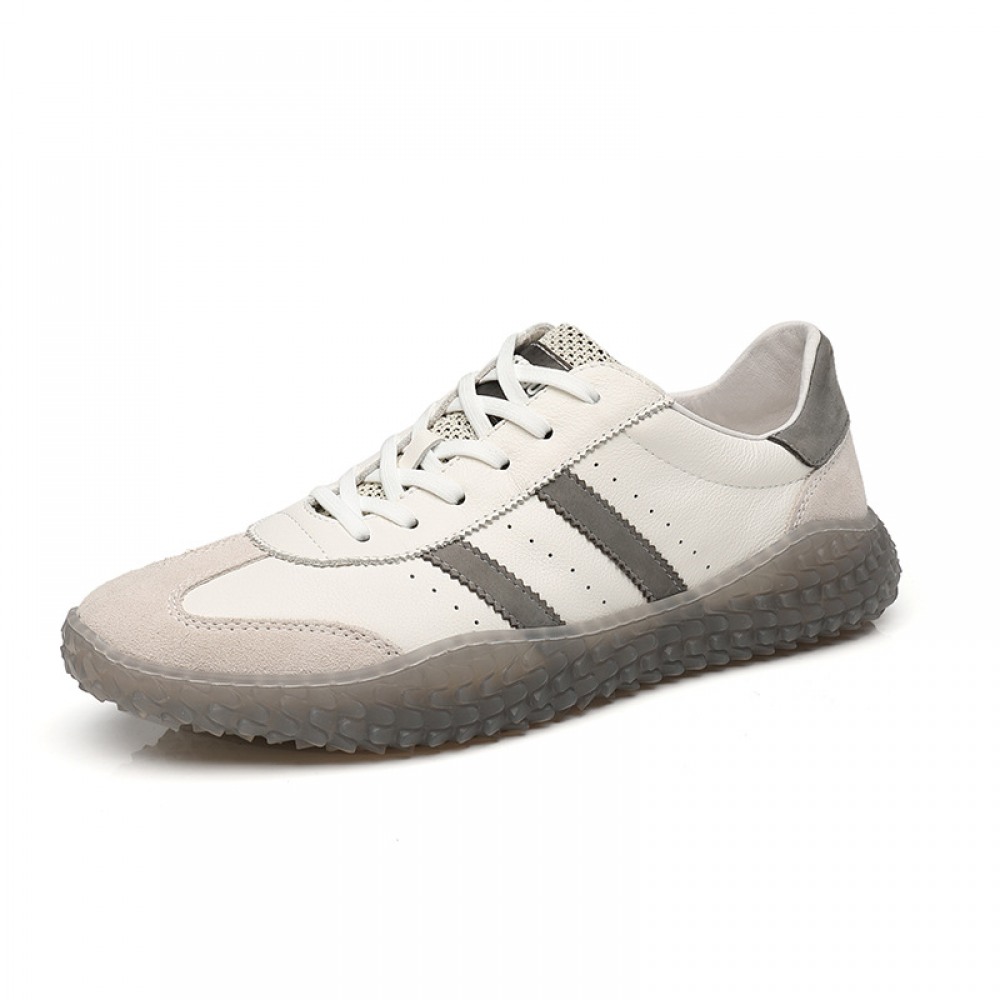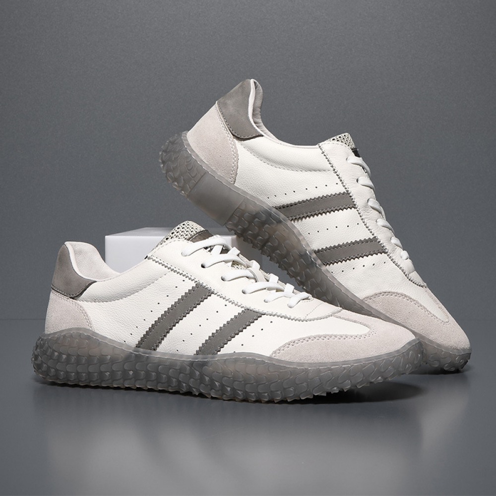 Trendy Shoes Explosive Style Transparent Sole Casual Shoes Breathable Flying Woven Tongue Men's Sports Shoes Genuine Leather