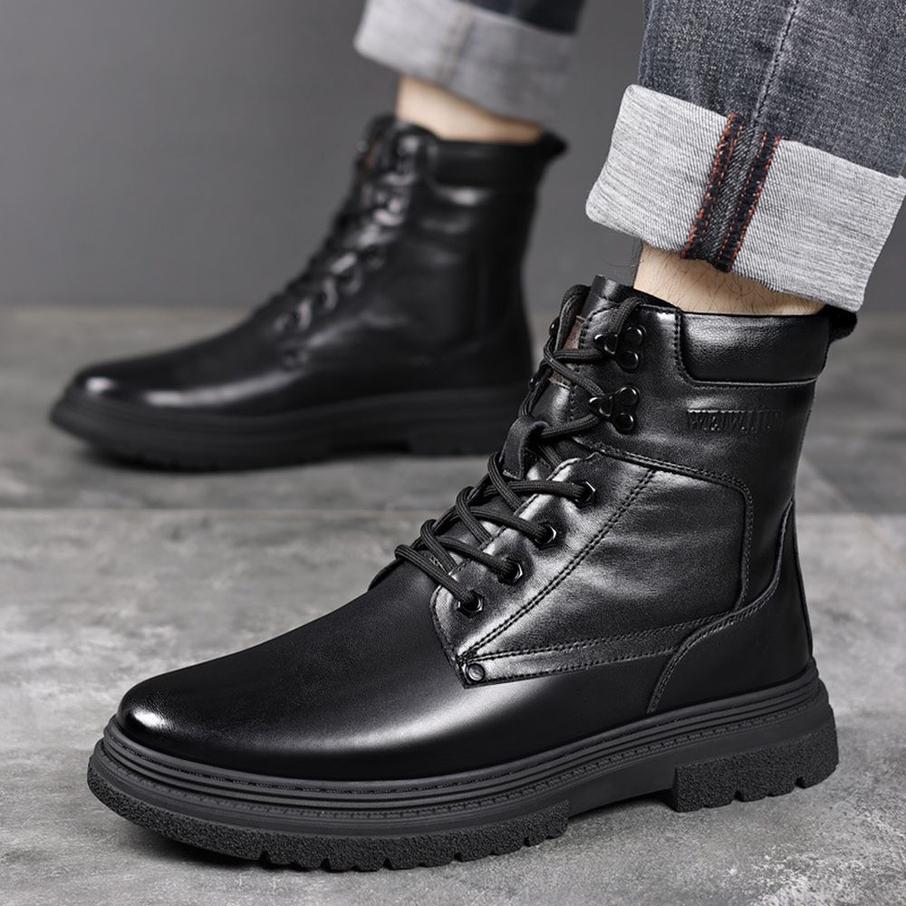 Men's Autumn and Winter New High-Top Cotton Shoes Mens Leather Martin Boots Casual Short Boots